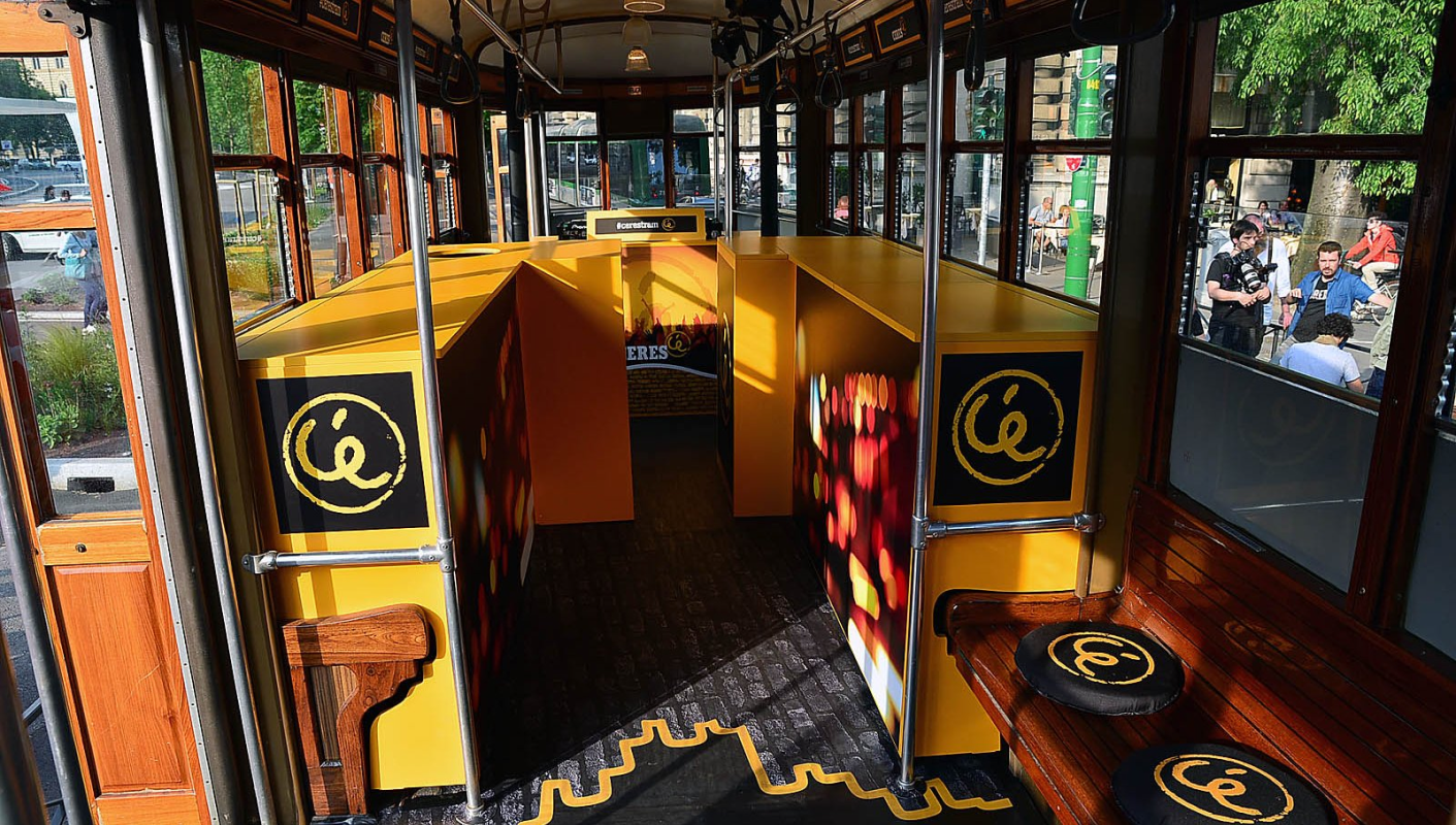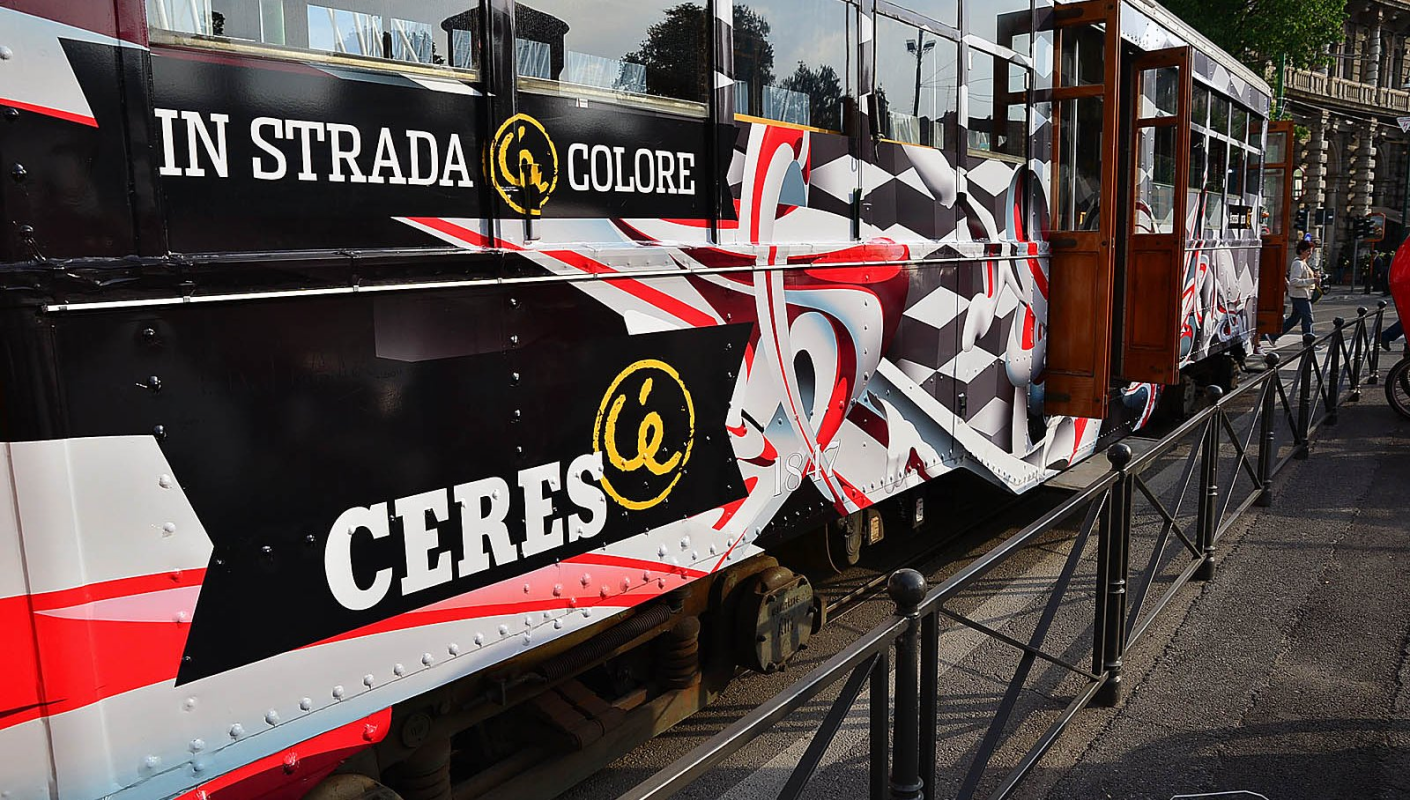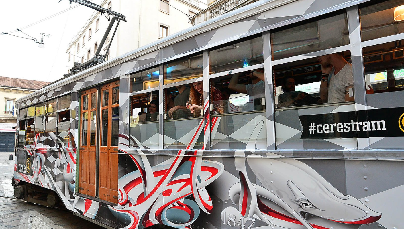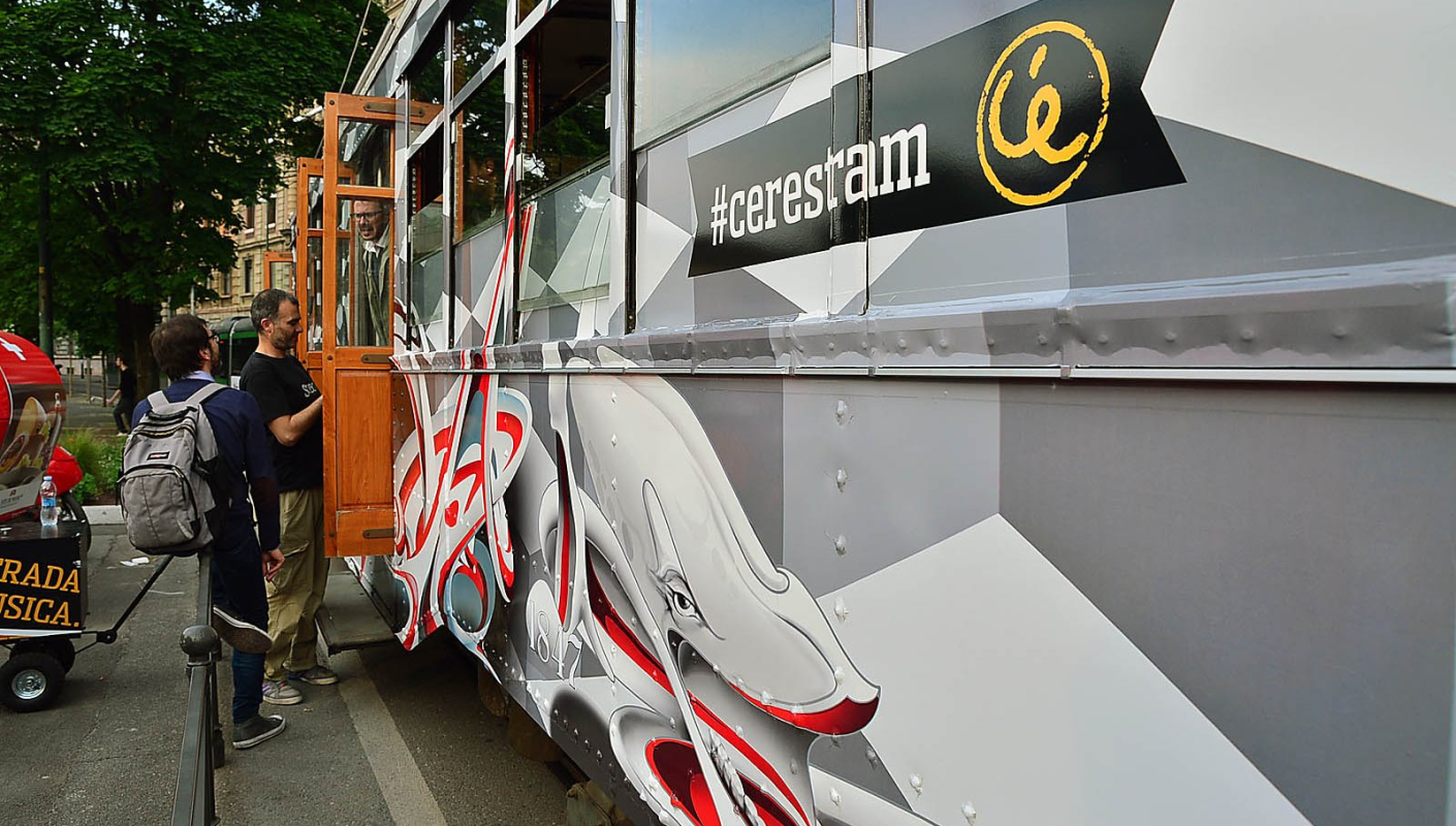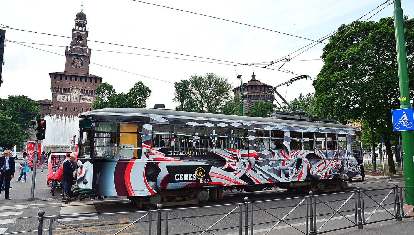 A tram designed by Made514, renowned Italian street artist, wondered around the streets of Milan involving passersby.