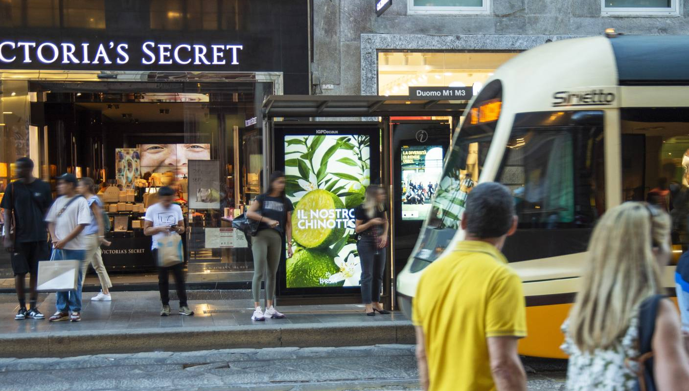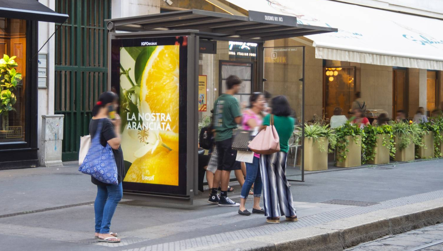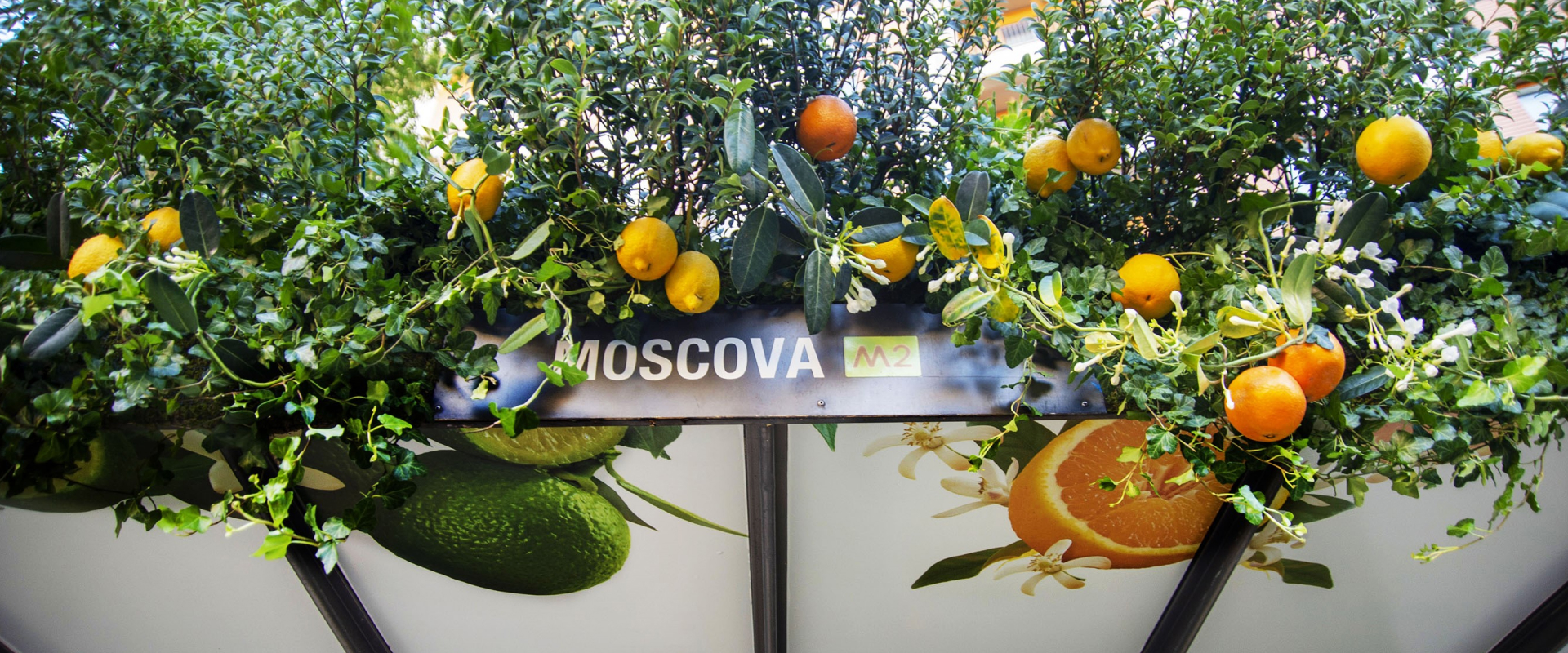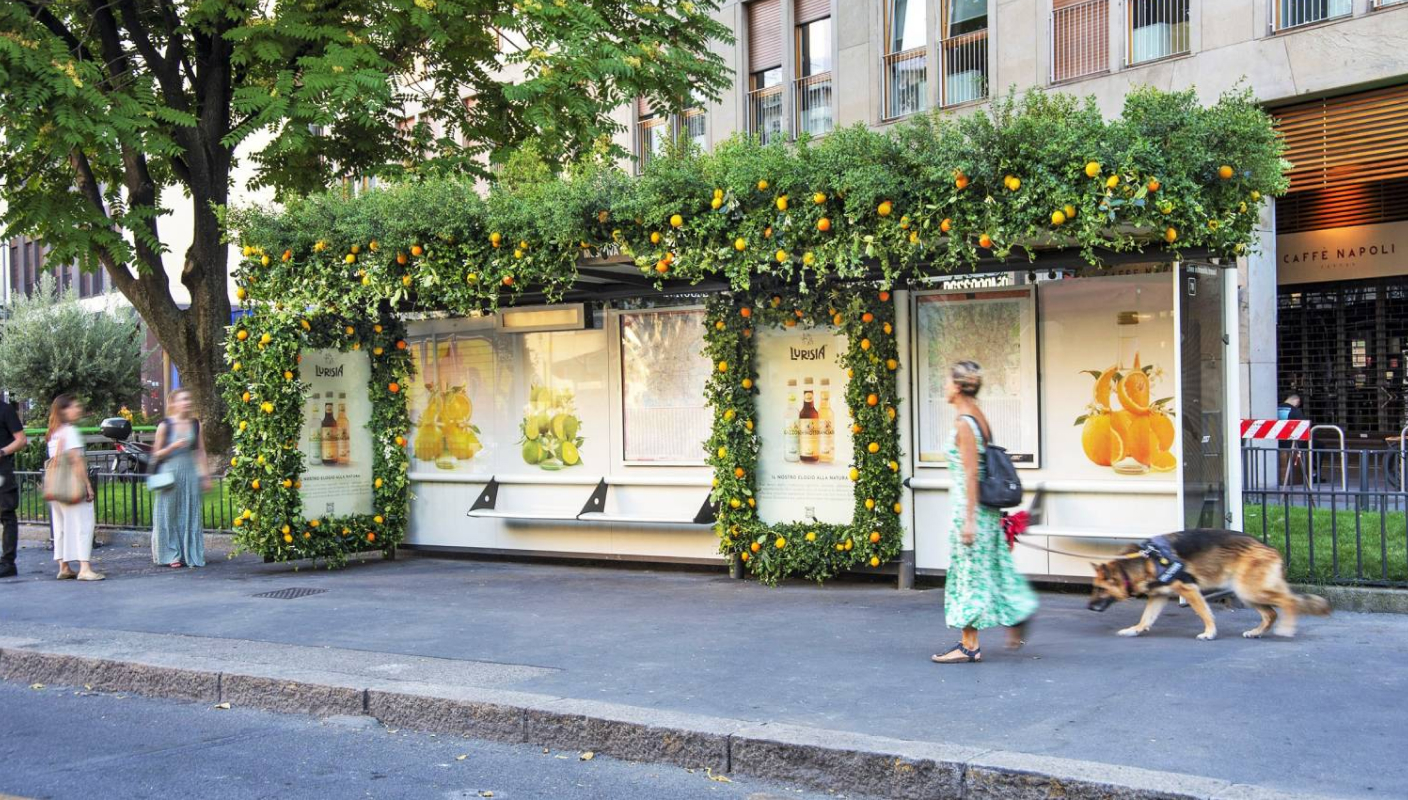 The OOH campaign developed in partnership with IGPDecaux Brand Solutions involved the fitting out of a branded canopy, decorated with fine lemons and oranges, with plants and flowers to attract the attention of people passing through Largo la Foppa, near the Moscova metro station in Milan.