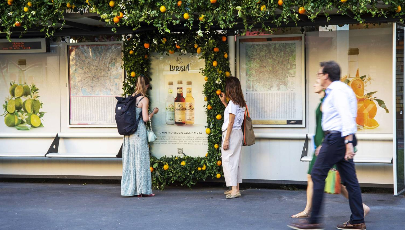 A creative setup, also supported by a network of digital shelters around town, to share the excellence of the Lurisia brand and the premium quality of its ingredients by planning OOH fittings that capture the audiences and give them a first-hand experience of the ingredients and citrus fruits that are at the heart of the Lurisia drinks.