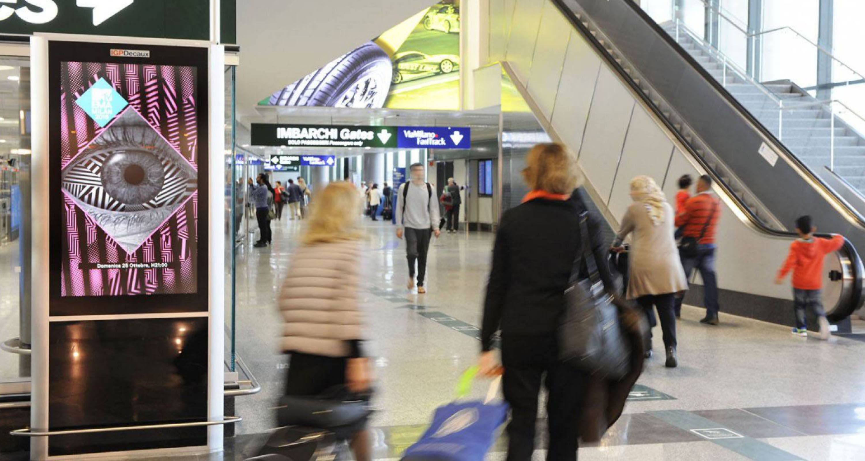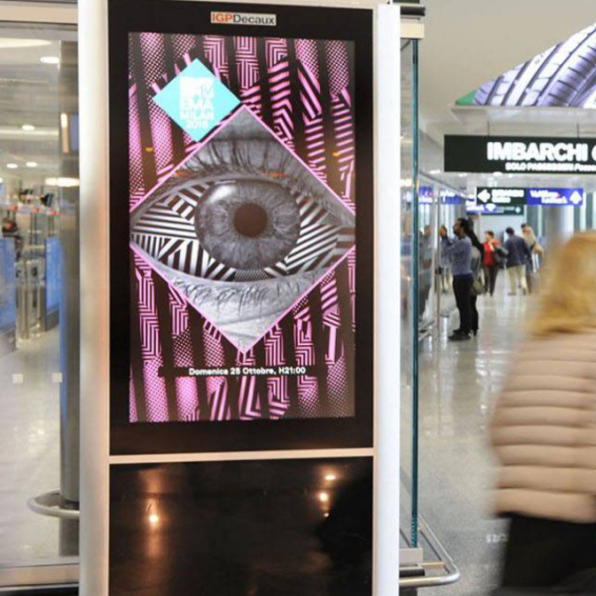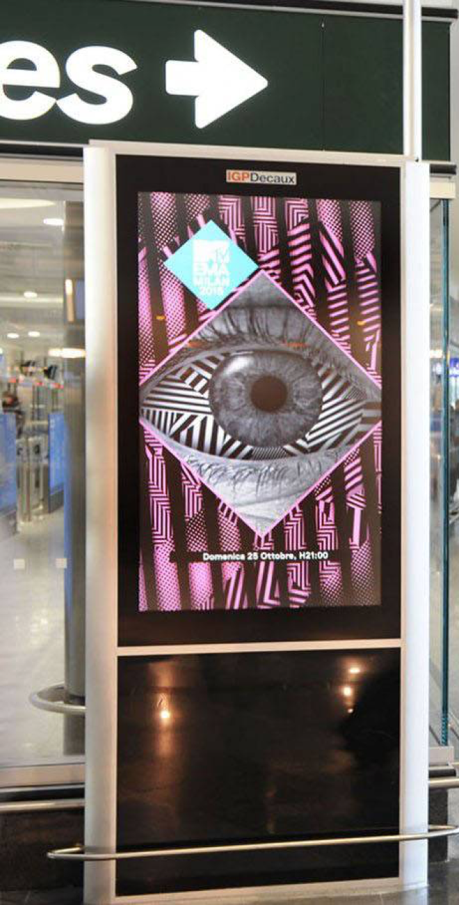 The communication project was structured for different OOH environments: in Milano Malpensa and Milano Linate airports a fancy Red Carpet branded MTV EMA, welcomed travelers and made them protagonists of the show. The campaign was also displayed on LCD screens.