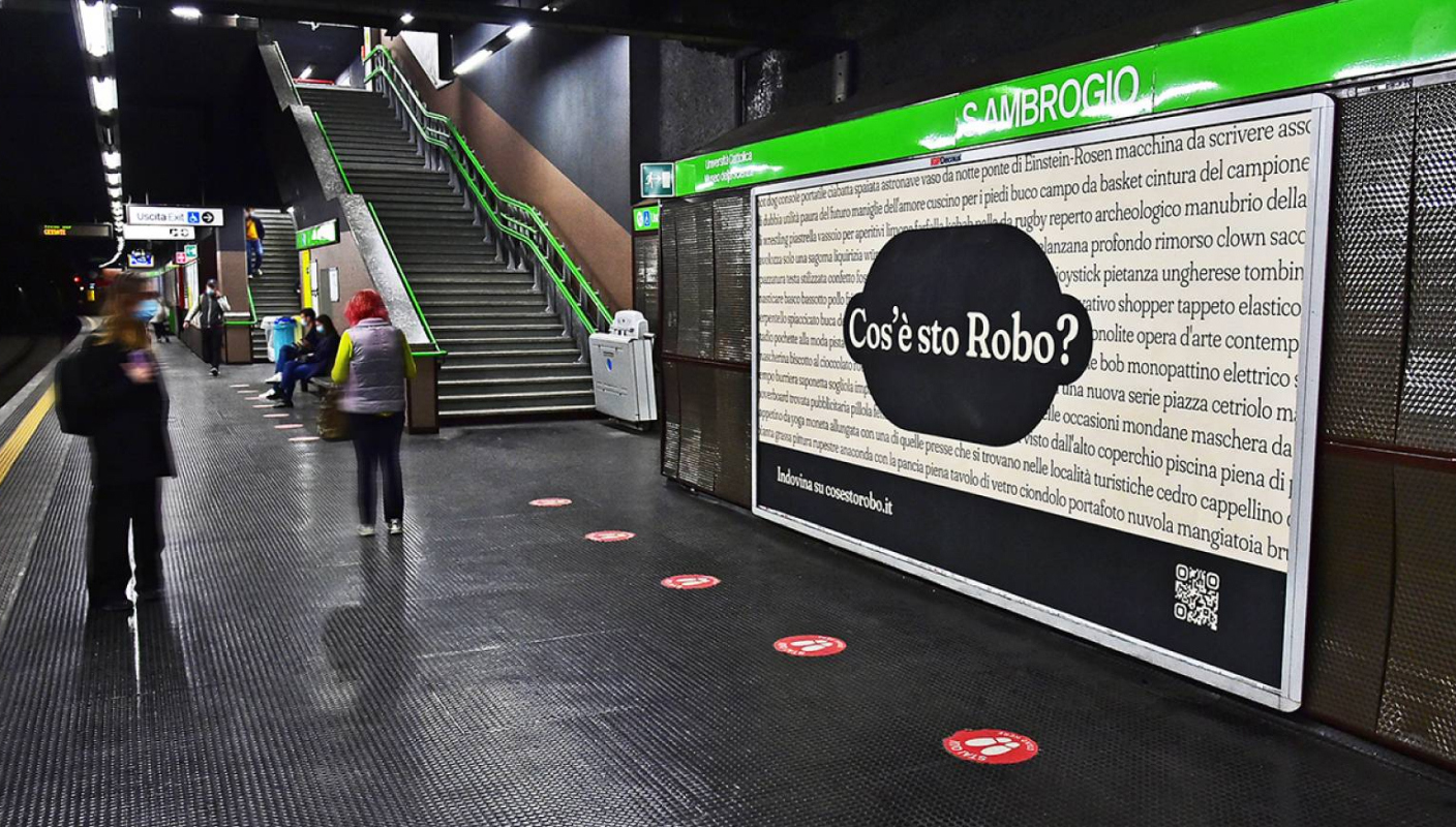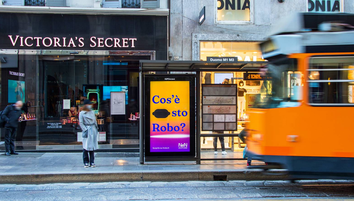 The installations involved in the Out Of Home planning, Network Vision circuits for street furniture and the metro, and a Phygital circuit in the metro, thus aroused the interest of passers-by by revealing only the outline of the product. Thecampaign also included the provision of mobile push notifications: users geolocated in the vicinity of the bus shelter reproducing the advertising could receive the customised notification on their smartphone in real time and, by clicking on it, be directed to the dedicated 'cosestorobo.it' page.