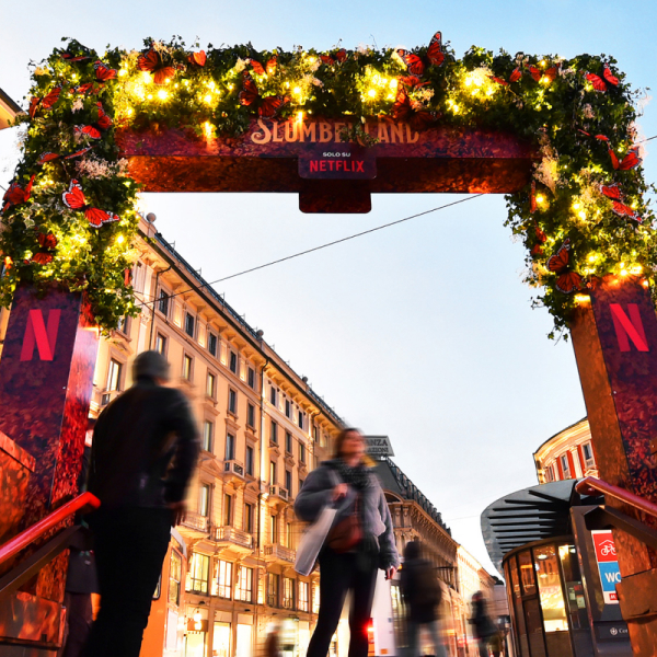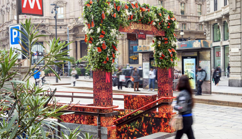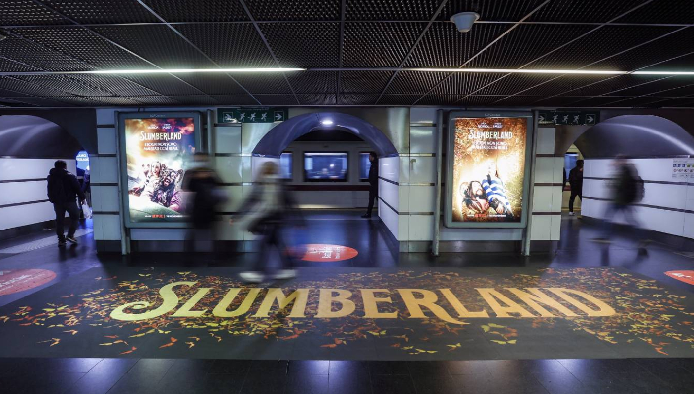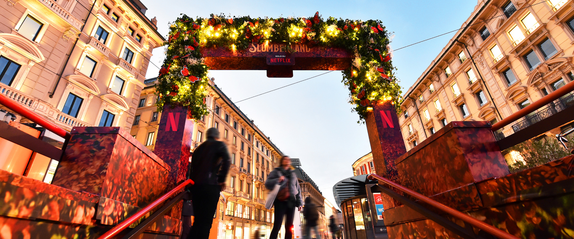 In the city of Milan, the Piazza Cordusio area was the main location of the film, with images that brought citizens and passers-by into Slumberland's dream world walking among the platforms of the metro station and up to the square. The OOH campaign included the decoration of the ATM multi-purpose structure, a branded full-wrap digital bus shelter, images of the stars of the new Netflix movie in the entire subway station, including the platform floor, and golden details and beautiful butterflies in the access portal that made everyone dream!