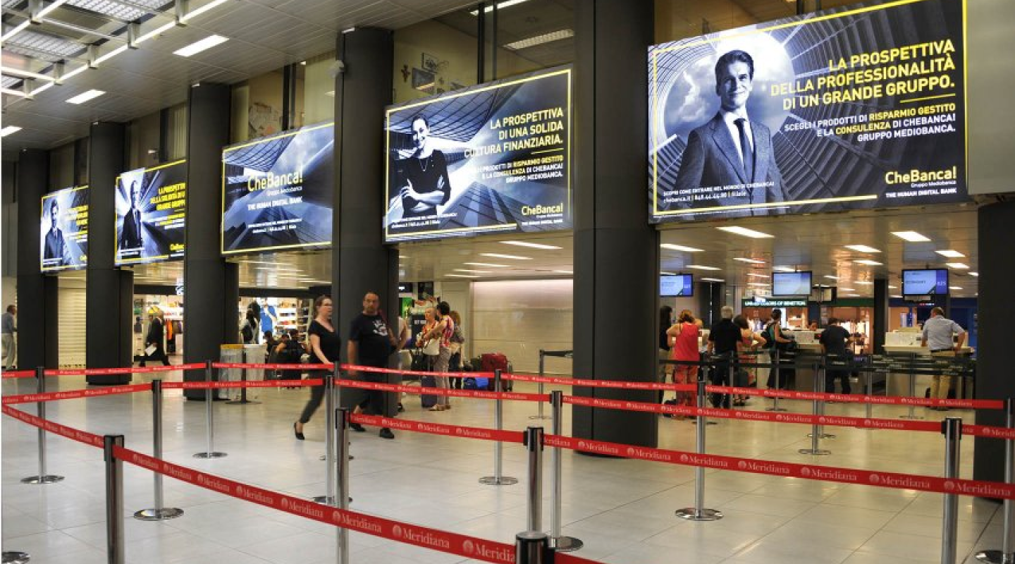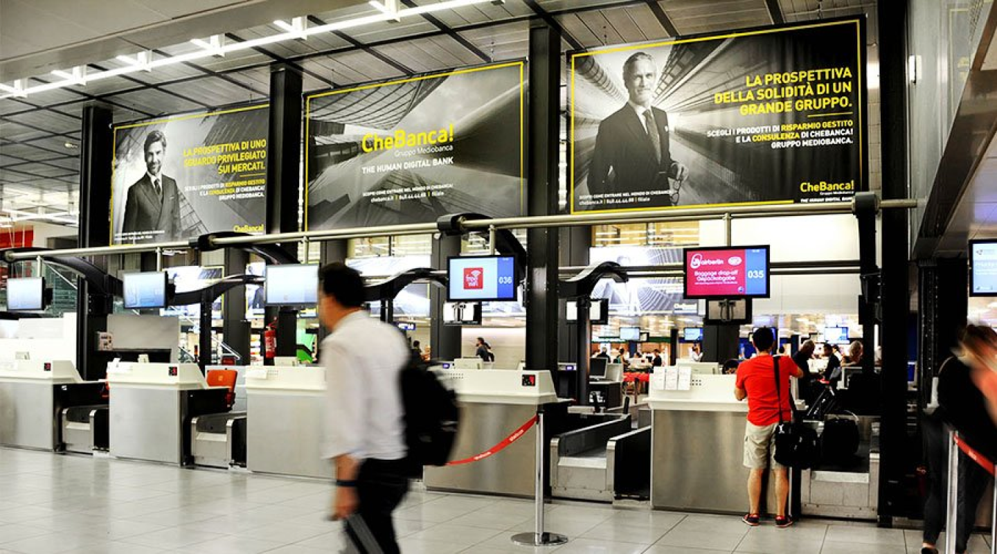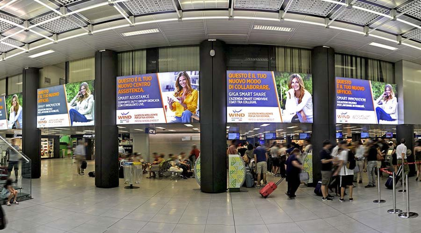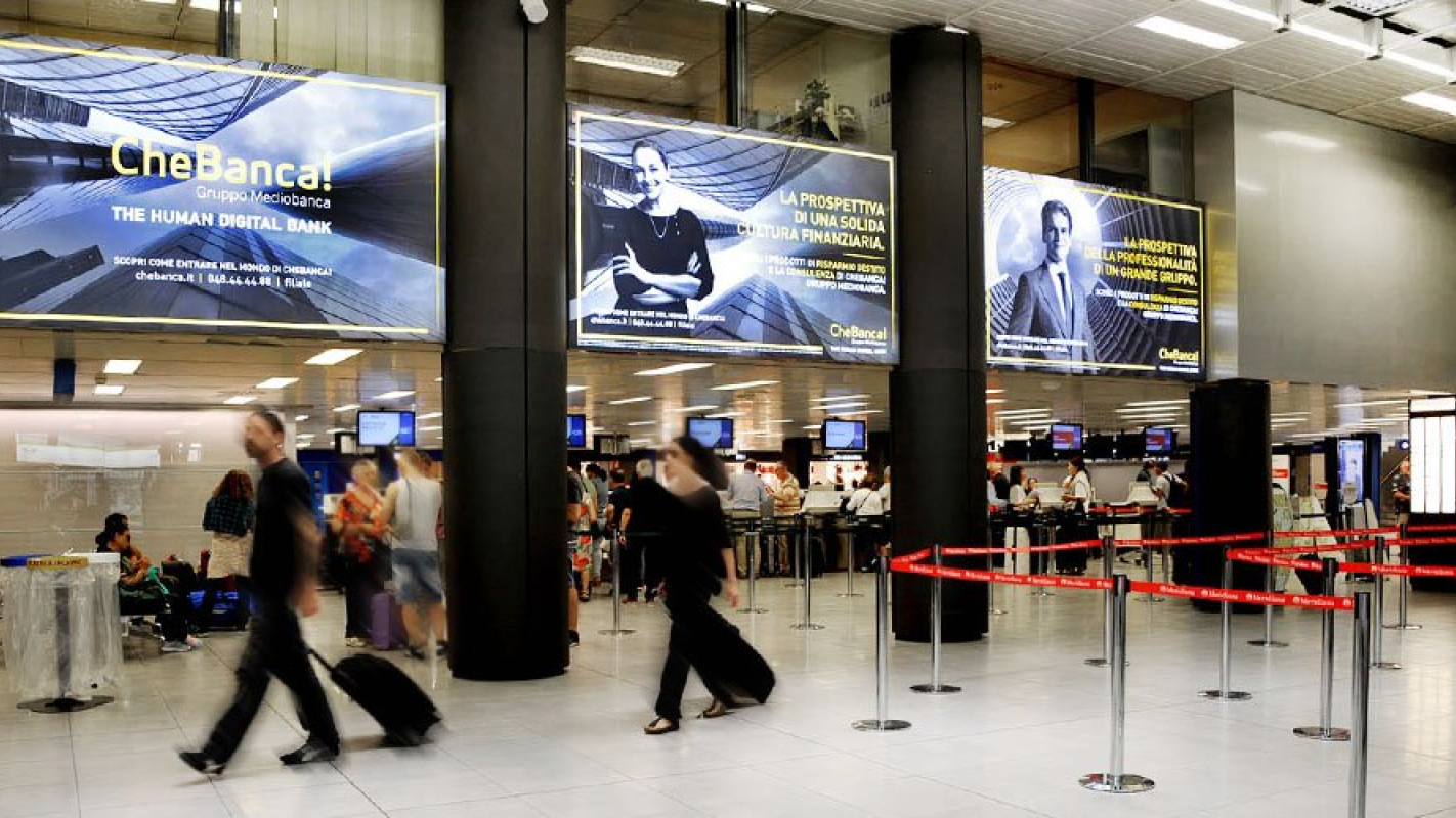 created in strategic areas, thus making the brand the protagonist of the specific airport context: formats are fully customisable and the audience varies depending on the positioning chosen.