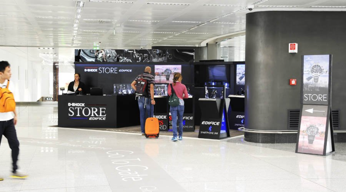 Exhibition Areas are stands, info-points or scenic set-ups for product displays that ensure direct contact with the airport target group. They are spaces of various sizes located in strategic airport areas that can be hired for short periods of time (from a minimum of 15 days to a maximum of 6 months).