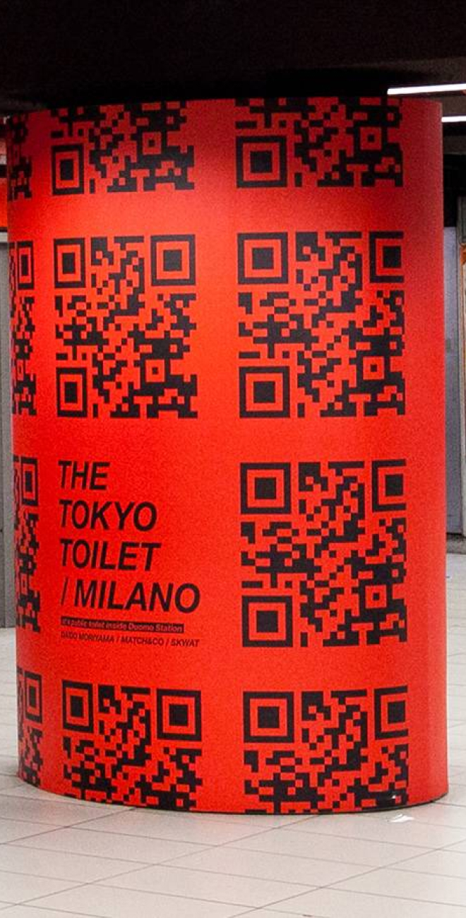 Per l’occasione, le Brand Solution di IGPDecaux hanno scelto di rivestire il mezzanino della metropolitana Duomo, fermata emblema del capoluogo milanese fra le più frequentate della città, con una Station Domination che richiama il colore rosso dell'evento e della linea metropolitana che ospita il bagno pubblico ristrutturato. Sulla creatività era inoltre presente un QR code che, appositamente inquadrato, riportava al sito del progetto originale realizzato dal team giapponese a Tokyo creando una connessione ipertestuale che collega non solo idealmente le due città.